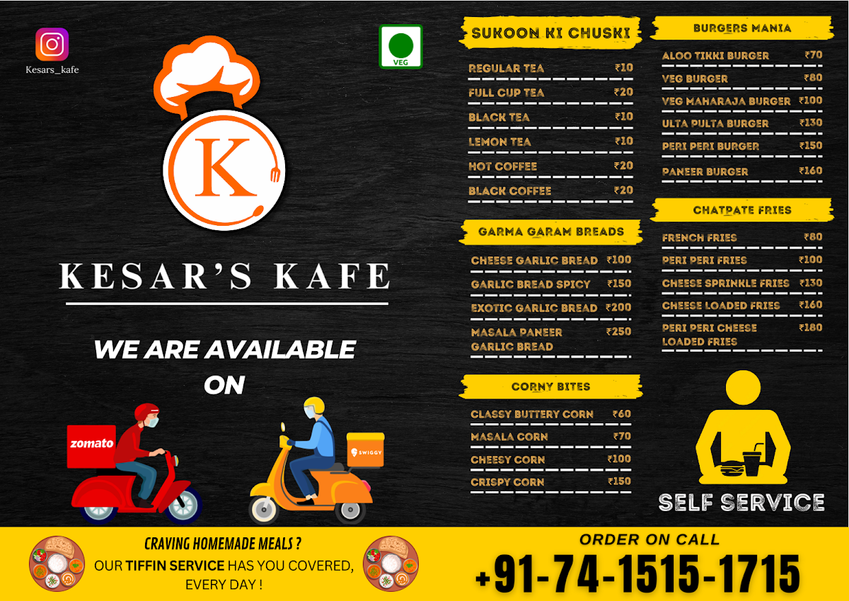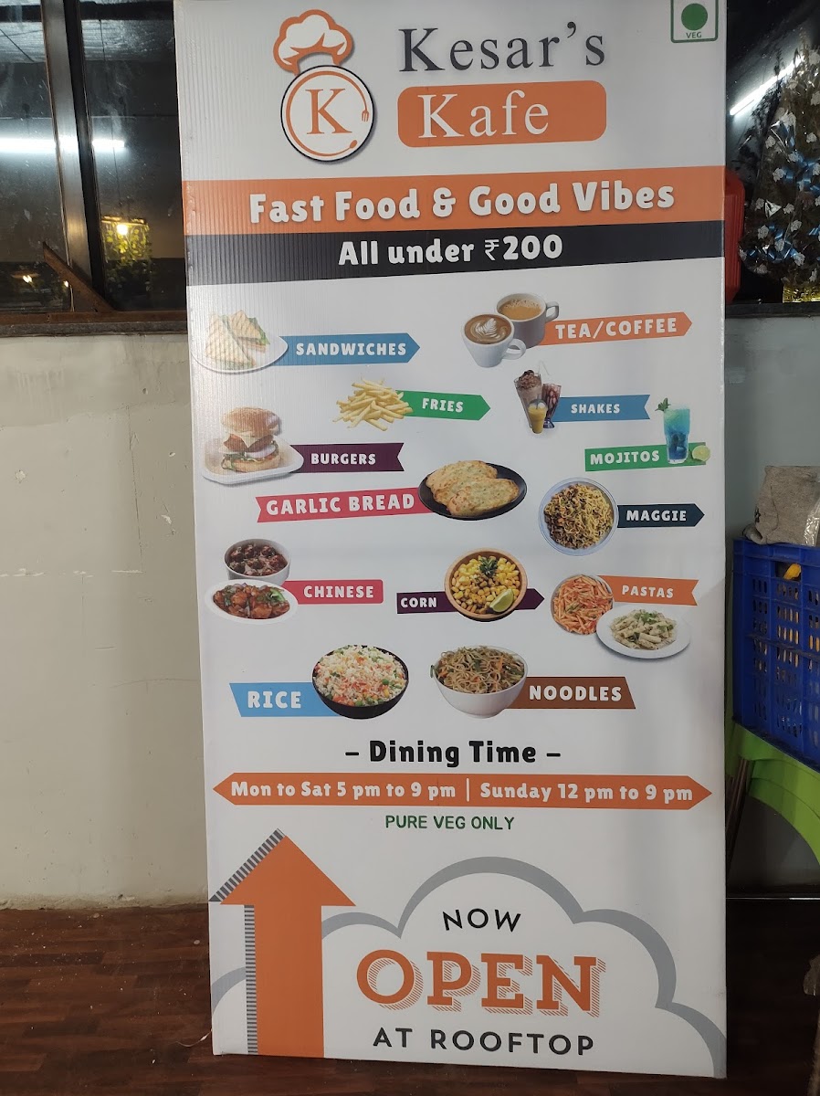 Kesar's Kafe, located on the rooftop of Chandra Planet in Raipur, invites food enthusiasts to indulge in a delightful culinary experience. This charming café specializes in an array of budget-friendly options, with every item under ₹200, making it the go-to spot for quick and delicious bites.